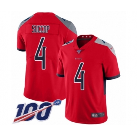 >Men's Tennessee Titans #4 Ryan Succop Limited Red Inverted Legend 100th Season Football Jersey