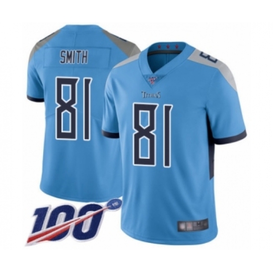 >Men's Tennessee Titans #81 Jonnu Smith Light Blue Alternate Vapor Untouchable Limited Player 100th Season Football Jersey