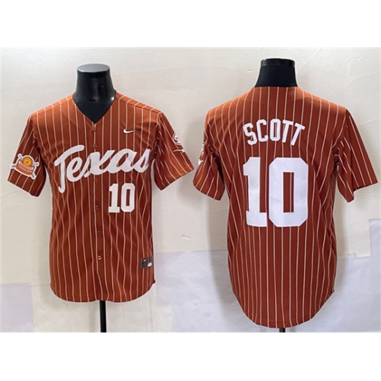 Men's Texas Longhorns #10 Mia Scott Orange Pinstripe 2025 World Series & SEC Patch Stitched Jersey