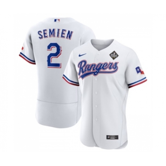Men's Texas Rangers #2 Marcus Semien White 2023 World Series Flex Base Stitched Baseball Jersey