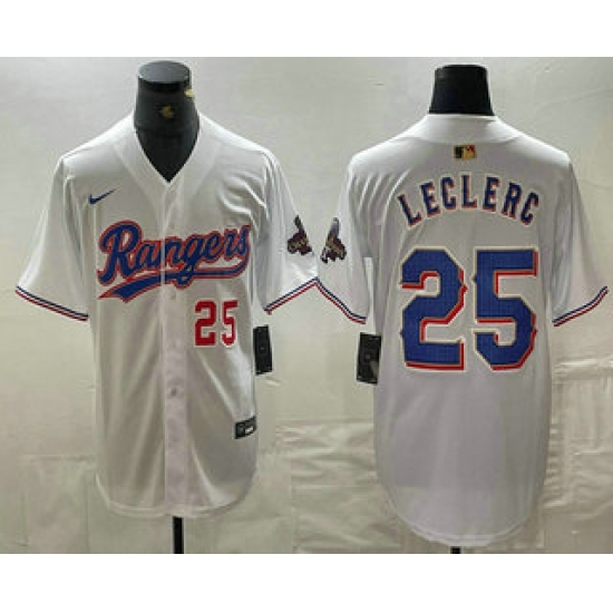 Men's Texas Rangers #25 Jose Leclerc Number White 2024 Gold Collection Limited Cool Base Jersey