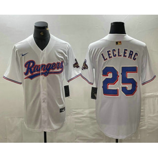 Men's Texas Rangers #25 Jose Leclerc White Home Flex Base Authentic Collection Baseball Player Jersey