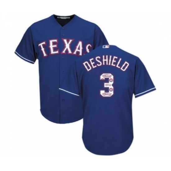Men's Texas Rangers #3 Delino DeShields Jr. Authentic Royal Blue Team Logo Fashion Cool Base Baseball Player Jersey