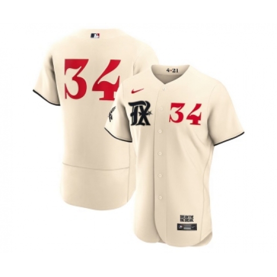 Men's Texas Rangers #34 Nolan Ryan Cream 2023 City Connect Flex Base Stitched Baseball Jersey