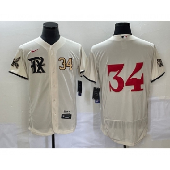 Men's Texas Rangers #34 Nolan Ryan Number Cream 2023 City Connect Flex Base Stitched Jersey