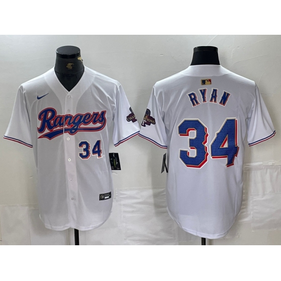Men's Mitchell and Ness Texas Rangers #34 Nolan Ryan Authentic White Throwback MLB Jersey