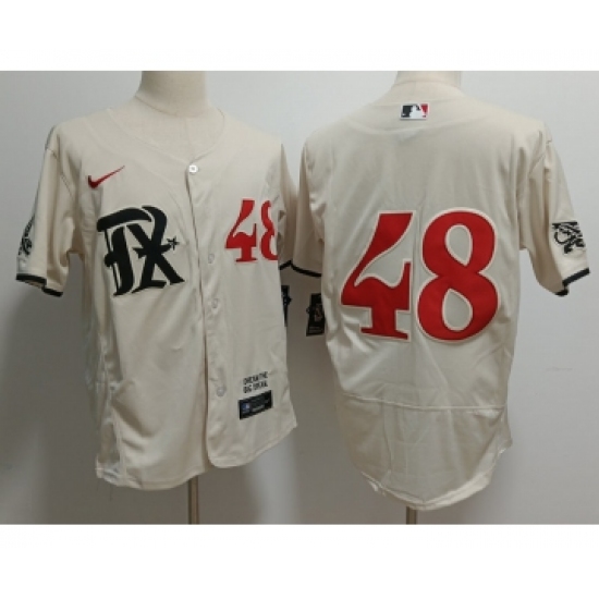 Men's Texas Rangers #48 Jacob deGrom Number Cream 2023 City Connect Flex Base Stitched Jersey