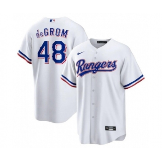 >Men's Texas Rangers #48 Jacob deGrom White Cool Base Stitched Baseball Jersey