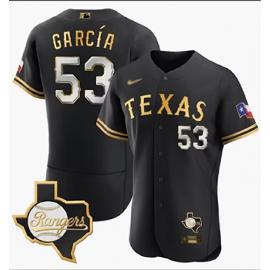 Men's Texas Rangers #53 Adolis Garcia Black Cool Base Stitched Baseball Jersey