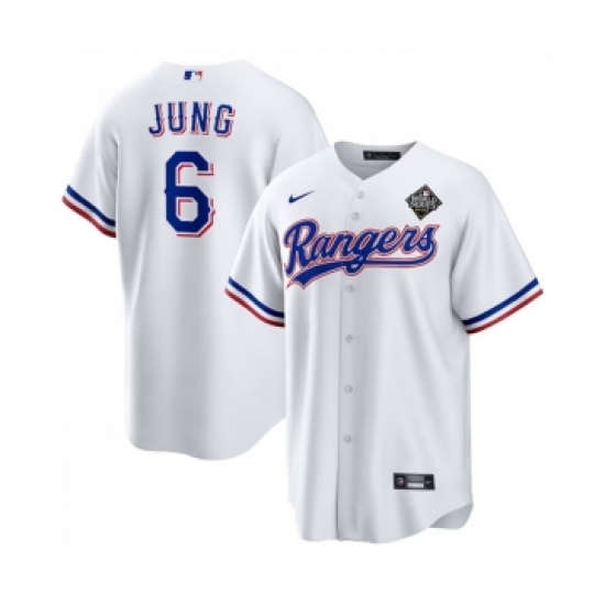 Men's Texas Rangers #6 Josh Jung Nike White Home 2023 World Series Champions Limited Jersey