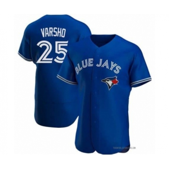 >Men's Toronto Blue Jays #25 Daulton Varsho Royal Flex Base Stitched Baseball Jersey
