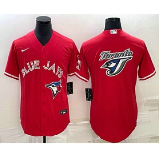 >Men's Toronto Blue Jays Big Logo Red Stitched MLB Cool Base Nike Jersey