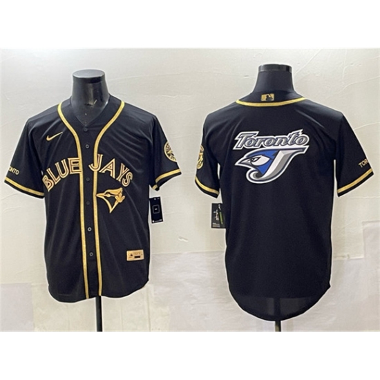>Men's Toronto Blue Jays Team Big Logo Black Gold Cool Base Stitched Jersey