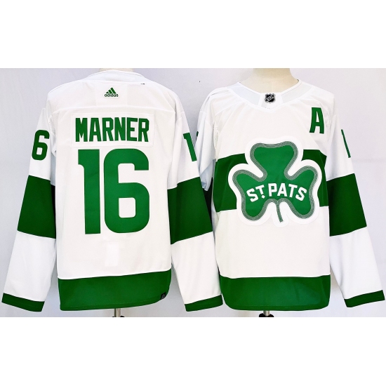 >Men's Toronto Maple Leafs #16 Mitch Marner White St Patricks Authentic Jersey