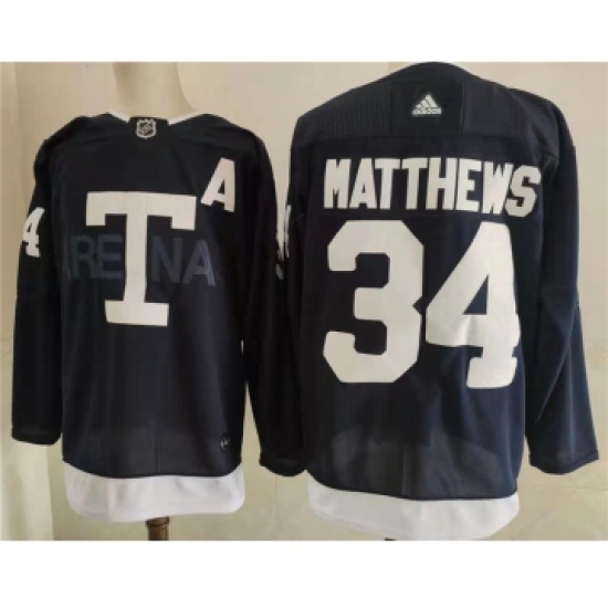 Men's Toronto Maple Leafs 34 Auston Matthews Navy 2022 NHL Heritage Classic Adidas Jersey