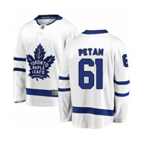 >Men's Toronto Maple Leafs #61 Nic Petan Authentic White Away Fanatics Branded Breakaway Hockey Jersey