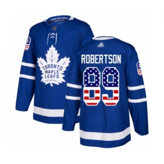 >Men's Toronto Maple Leafs #89 Nicholas Robertson Authentic Royal Blue USA Flag Fashion Hockey Jersey