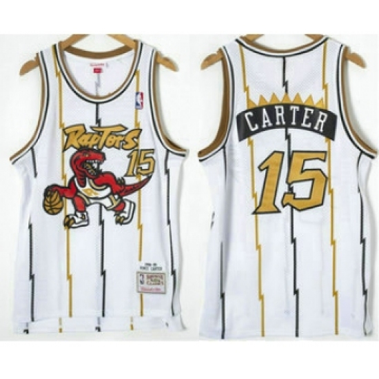 >Men's Toronto Raptors #15 Vince Carter 1998-99 White Gold Hardwood Classics Soul Swingman Throwback Jersey
