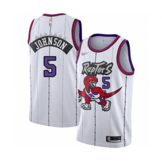 Men's Toronto Raptors #5 Stanley Johnson Authentic White Hardwood Classics Basketball Jersey