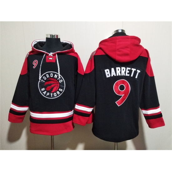 >Men's Toronto Raptors #9 RJ Barrett Black Red Lace-Up Pullover Hoodie