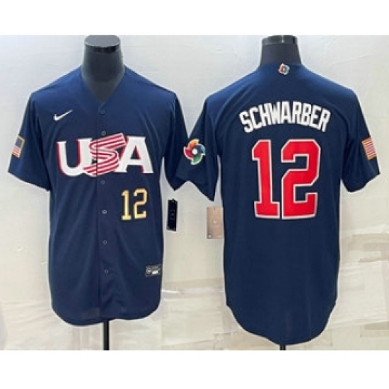Mens USA Baseball #12 Kyle Schwarber Number 2023 Navy World Baseball Classic Stitched Jersey