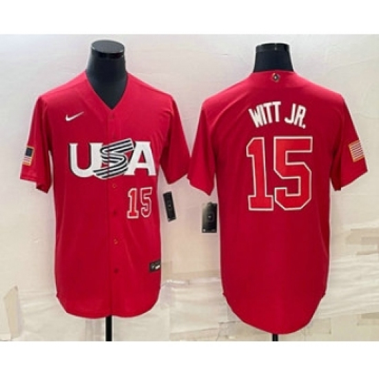 >Men's USA Baseball #15 Bobby Witt Jr Number 2023 Red World Baseball Classic Stitched Jersey1