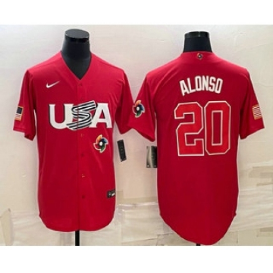 Men's USA Baseball #20 Pete Alonso 2023 Red World Classic Stitched Jerseys
