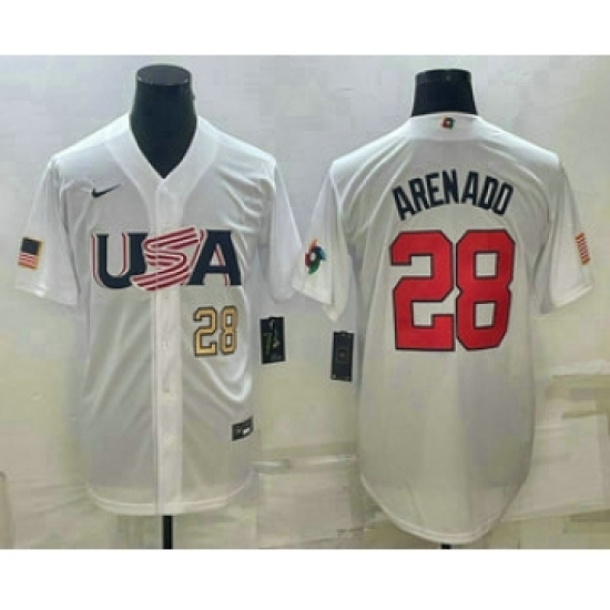 Mens USA Baseball #28 Nolan Arenado Number 2023 White World Baseball Classic Replica Stitched Jersey