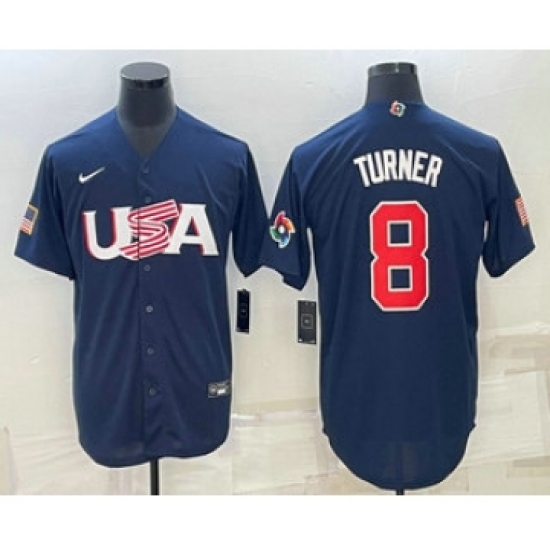 >Men's USA Baseball #8 Trea Turner 2023 Navy World Baseball Classic Stitched Jerseys