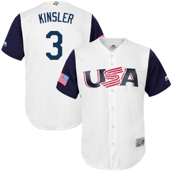 Men's USA Baseball Majestic #3 Ian Kinsler White 2017 World Baseball Classic Replica Team Jersey