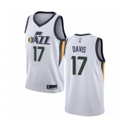 >Men's Utah Jazz #17 Ed Davis Authentic White Basketball Jersey - Association Edition
