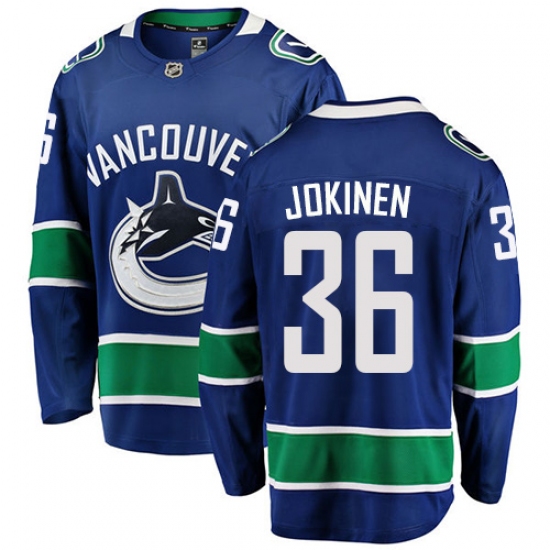 >Men's Vancouver Canucks #36 Jussi Jokinen Fanatics Branded Blue Home Breakaway NHL Jersey