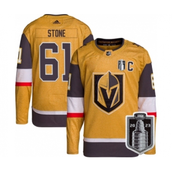 >Men's Vegas Golden Knights #61 Mark Stone Gold 2023 Stanley Cup Final Stitched Jersey