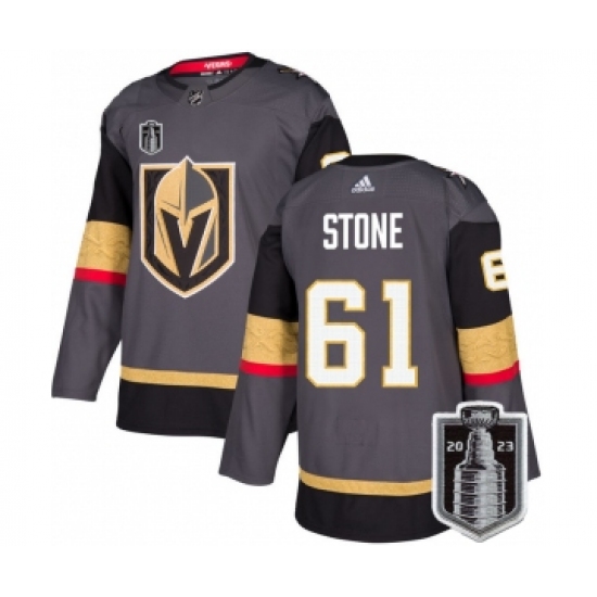 >Men's Vegas Golden Knights #61 Mark Stone Gray 2023 Stanley Cup Final Stitched Jersey