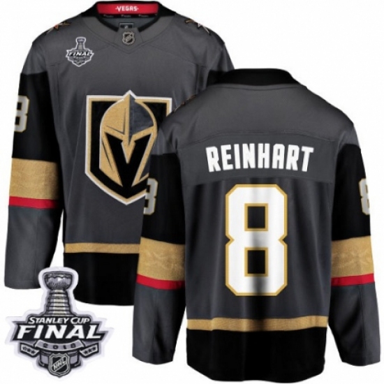 >Men's Vegas Golden Knights #8 Griffin Reinhart Authentic Black Home Fanatics Branded Breakaway 2018 Stanley Cup Final NHL Jersey