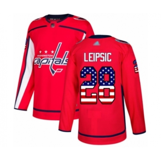 Men's Washington Capitals #28 Brendan Leipsic Authentic Red USA Flag Fashion Hockey Jersey