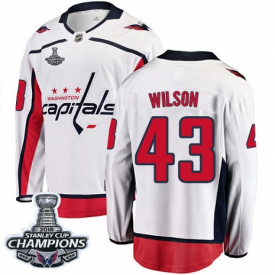 Men's Washington Capitals #43 Tom Wilson Fanatics Branded White Away Breakaway 2018 Stanley Cup Final Champions NHL Jersey