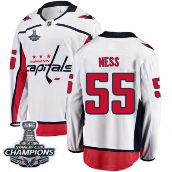 >Men's Washington Capitals #55 Aaron Ness Fanatics Branded White Away Breakaway 2018 Stanley Cup Final Champions NHL Jersey