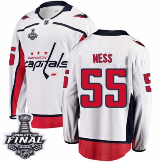 >Men's Washington Capitals #55 Aaron Ness Fanatics Branded White Away Breakaway 2018 Stanley Cup Final NHL Jersey