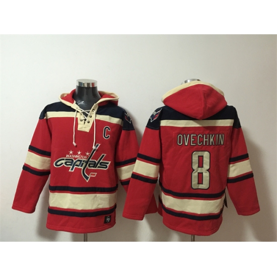 Men's Washington Capitals #8 Alex Ovechkin Red All Stitched Sweatshirt Hoodie