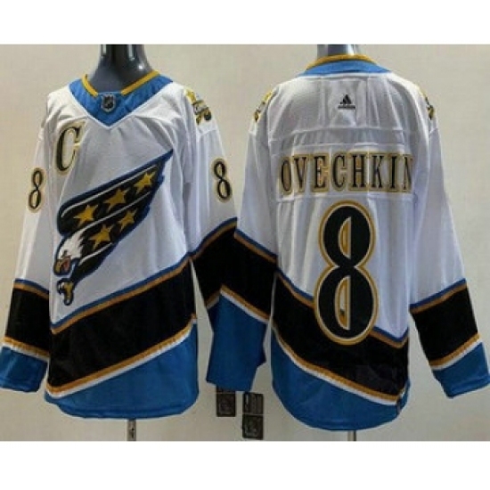 >Men's Washington Capitals #8 Alex Ovechkin White 2021 Reverse Retro Authentic Jersey