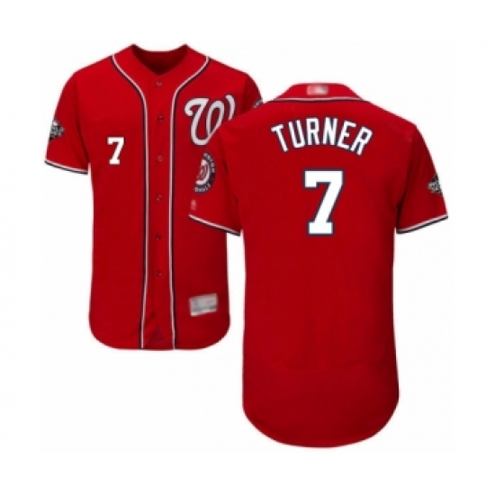 >Men's Washington Nationals #7 Trea Turner Red Alternate Flex Base Authentic Collection 2019 World Series Bound Baseball Jersey