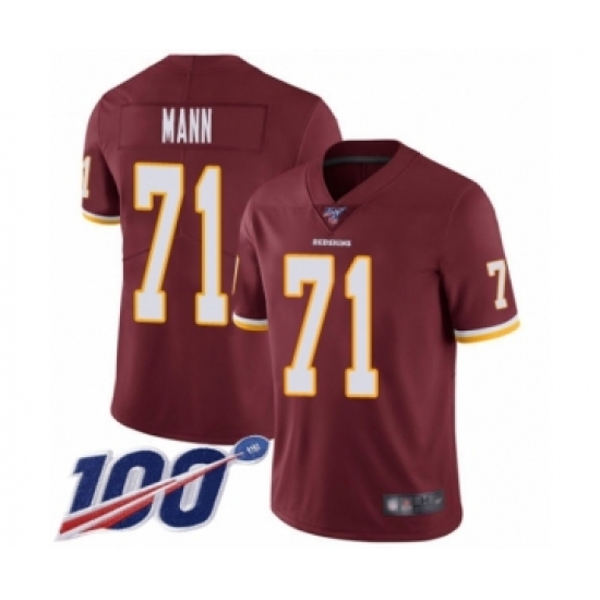 >Men's Washington Redskins #71 Charles Mann Burgundy Red Team Color Vapor Untouchable Limited Player 100th Season Football Jersey