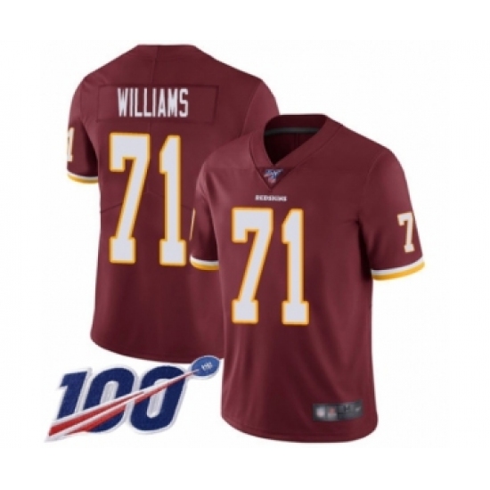 Men's Washington Redskins #71 Trent Williams Burgundy Red Team Color Vapor Untouchable Limited Player 100th Season Football Jersey