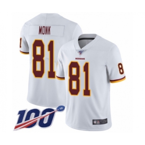 Men's Washington Redskins #81 Art Monk White Vapor Untouchable Limited Player 100th Season Football Jersey