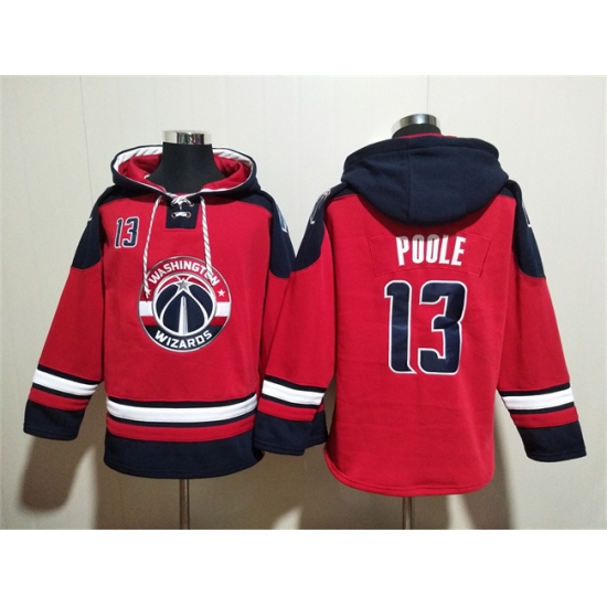 >Men's Washington Wizards #13 Jordan Poole Red Navy Lace-Up Pullover Hoodie
