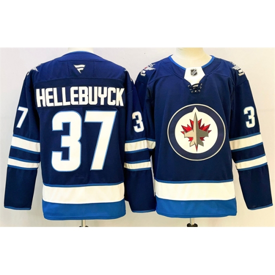 >Men's Winnipeg Jets #37 Connor Hellebuyck Connor Hellebuyck Navy 2024-25 Home Stitched Hockey Jersey