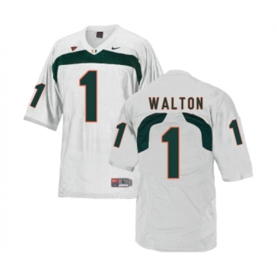 >Miami Hurricanes 1 Mark Walton White College Football Jersey