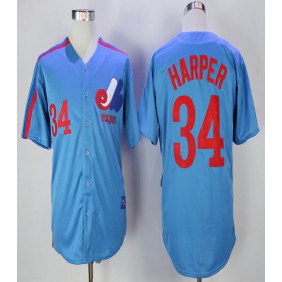 Mitchell And Ness Montreal Expos #34 Bryce Harper Blue Throwback Stitched MLB Jersey