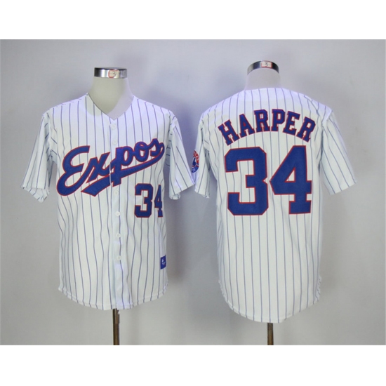 >Montreal Expos #34 Bryce Harper White Throwback Jersey